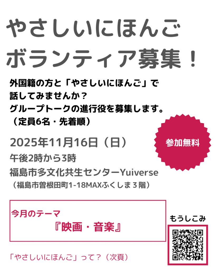 外国籍の方と「やさしいにほんご」でおしゃべりしませんか?