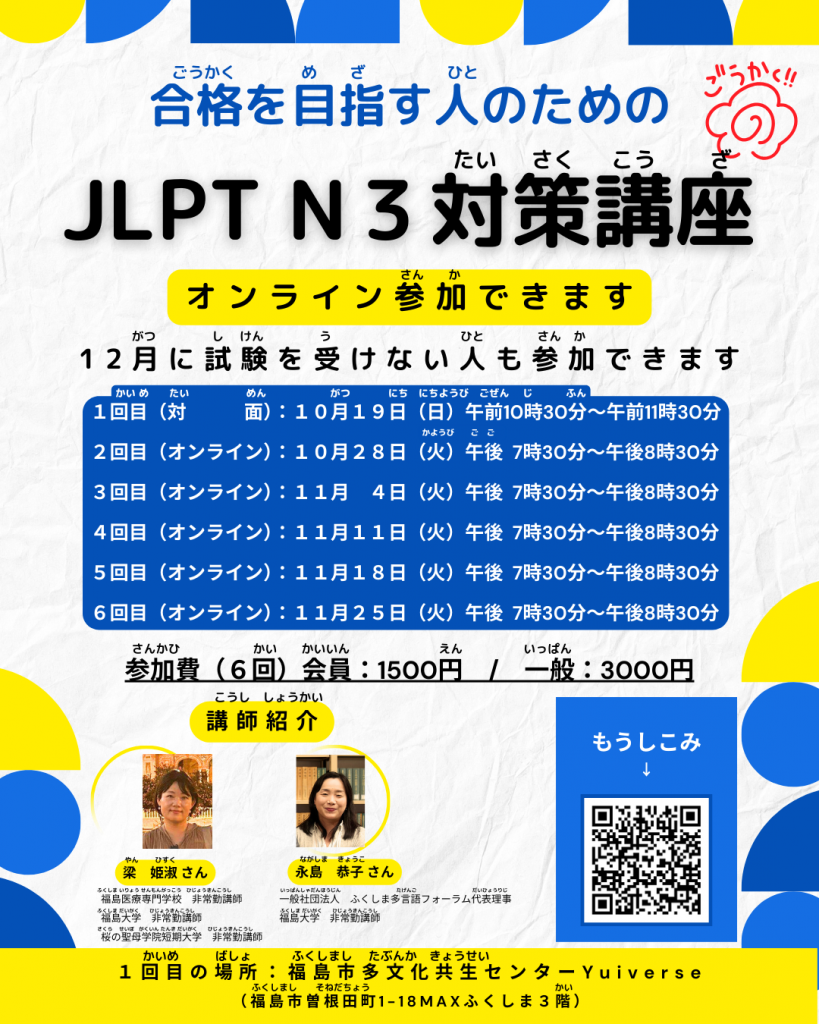 JLPT N3をうけたい人のための べんきょうクラスです。