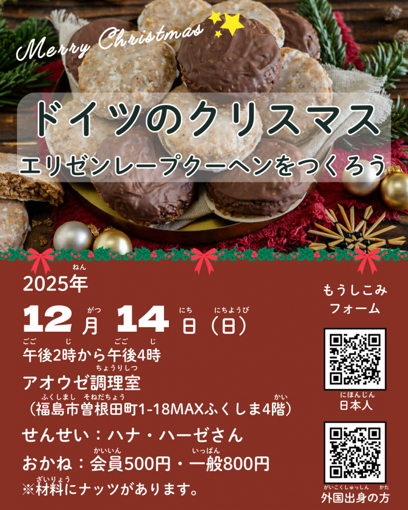 ドイツのクリスマス「エリゼンレープクーヘン」をつくろう! 12月14日(日)開催
