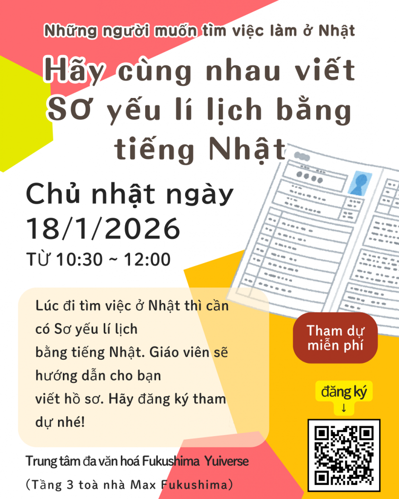 にほんの履歴書(りれきしょ)を かいてみよう!Let’s Write a Japanese Resume!Hãy cùng viết Sơ yếu lí lịch nhé!