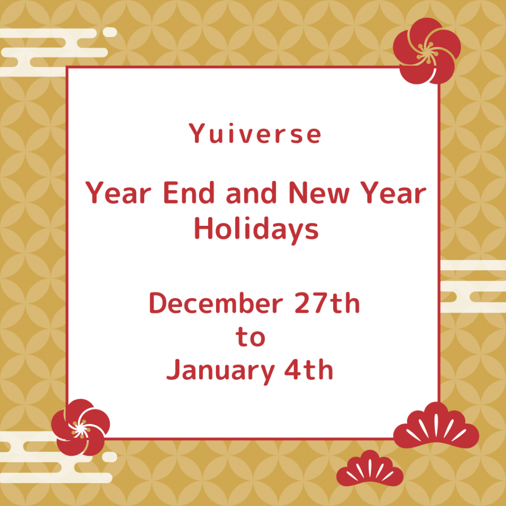 Yuiverse will be closed from December 27th, 2025 to January 4th, 2026. We are wishing everyone a happy new year.