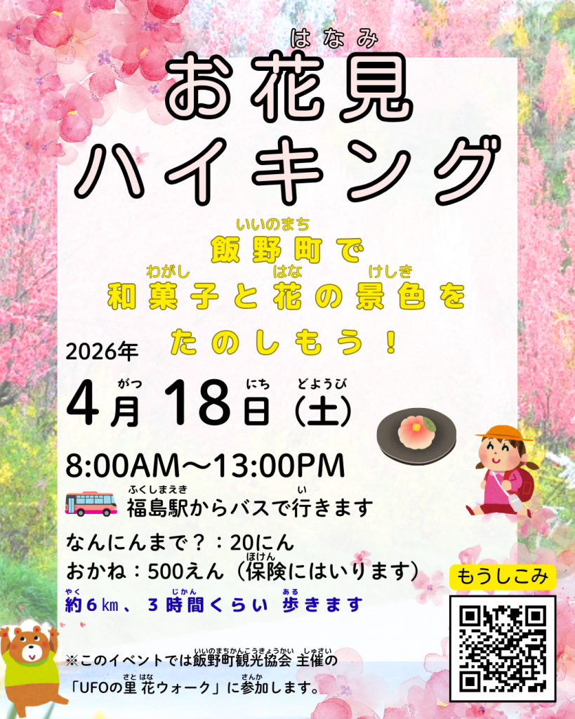 お花見(はなみ)ハイキングに いきませんか?Join us for a flower-viewing hike! Mọi người ơi, cùng đi ngắm hoa không ạ?