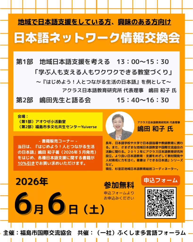 地域の日本語教室に関わっている方、活動に興味のある方には、ぜひご参加ください。